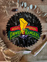 Channel your inner Zord pilot with this 10” hand-painted saw blade, featuring the iconic Mighty Morphin Power Rangers logo in full vibrant glory. Set against a swirling storm of shadow and cosmic color, this piece is a nostalgia-packed tribute to the ‘90s Saturday mornings that shaped us all.