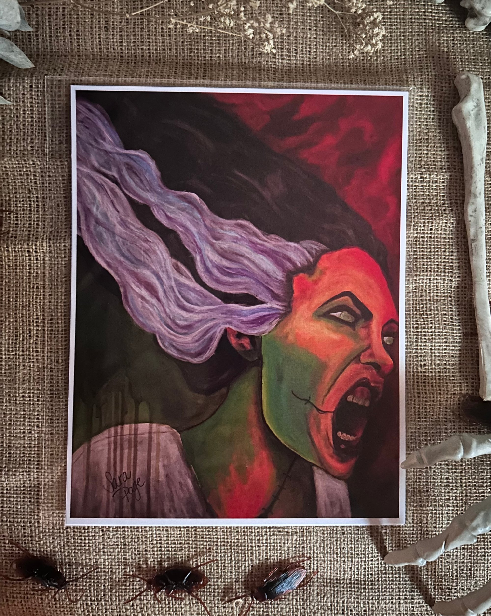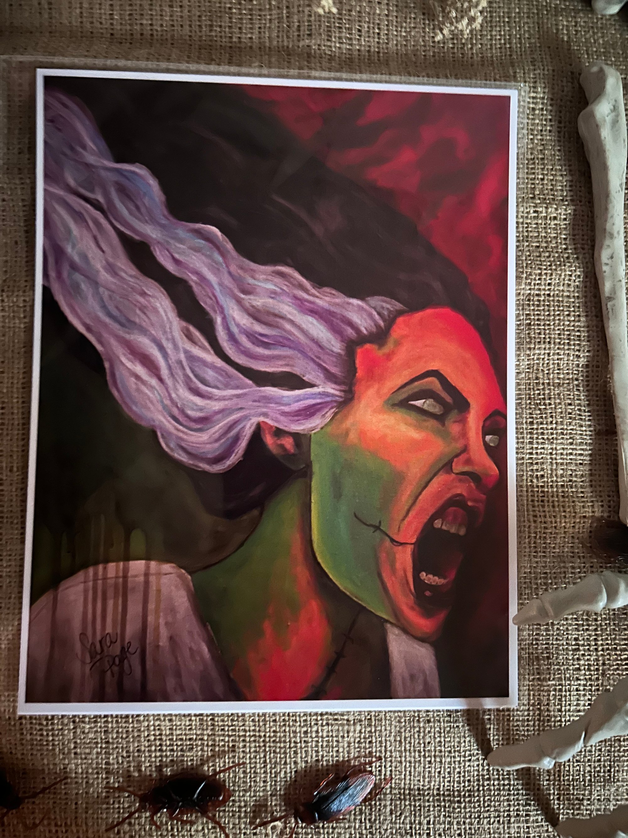 Bring a little darkness to your walls with this 8.5” x 11” art print, carefully printed at home on 72 lb satin photo paper for rich colors and a smooth, slightly glossy finish. Each print is a high-quality reproduction of my original hand-painted horror artwork — perfect for framing, gifting, or summoning the right vibes into your space.